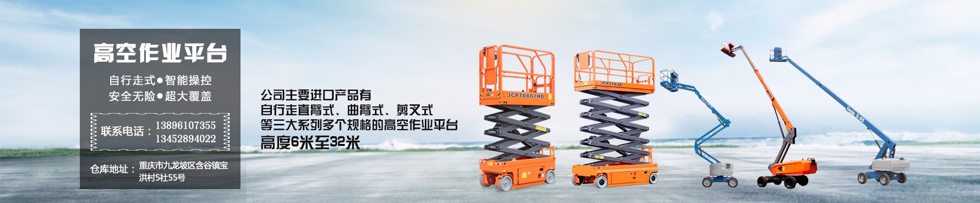 重慶江軒機械設備有限公司主要進口產品有自行走直臂式、曲臂式、剪叉式等三大系列多個規格的高空作業平臺。 產品特色是自行走式......